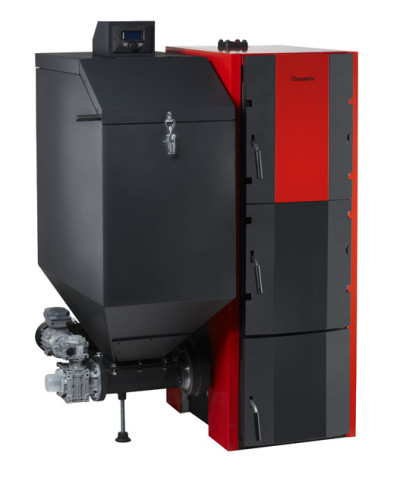 Automatický kotel na tuhá paliva FB2 Automat je určen ke spalování hnědého uhlí, černého uhlí a pelet.Vhodný je pro systémy se samotížným i nuceným oběhem topné vody. Výměník, rošty, hořák i podavač jsou vyrobeny z kvalitní tlakově lité litiny, která zaručuje dlouhou životnost kotle a tím i minimální náklady na jeho dlouholetý provoz. Kotel je k dispozici v pravém i levém provedení. Kotel pracuje pouze v automatickém režimu podávání paliva do hořáku a to pomocí šnekového podavače z násypky. Těleso výměníku automatického kotle je vyrobeno ze speciální šedé litiny a slouží k účinnému předání tepla ze spalin do ohřívané vody. Opláštění vyplněné izolačním materiálem zabraňuje ztrátám sáláním a pohotovostním ztrátám. Popelník je umístěn ve spodní části kotle a je dimenzován na objem popela vzniklý po 12 hodinách provozu na jmenovitý výkon. Objem násypky 285, resp. 385 litrů umožňuje nejméně 30 hodin provozu na jmenovitý výkon, v praxi tak můžete topit až 3 dny bez nutnosti doplňovat palivo.Přednosti